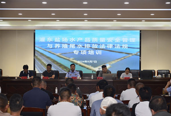 灌東鹽場(chǎng)舉辦水產(chǎn)品質(zhì)量安全管理暨養(yǎng)殖尾水排放法律法規(guī)專項(xiàng)培訓(xùn)