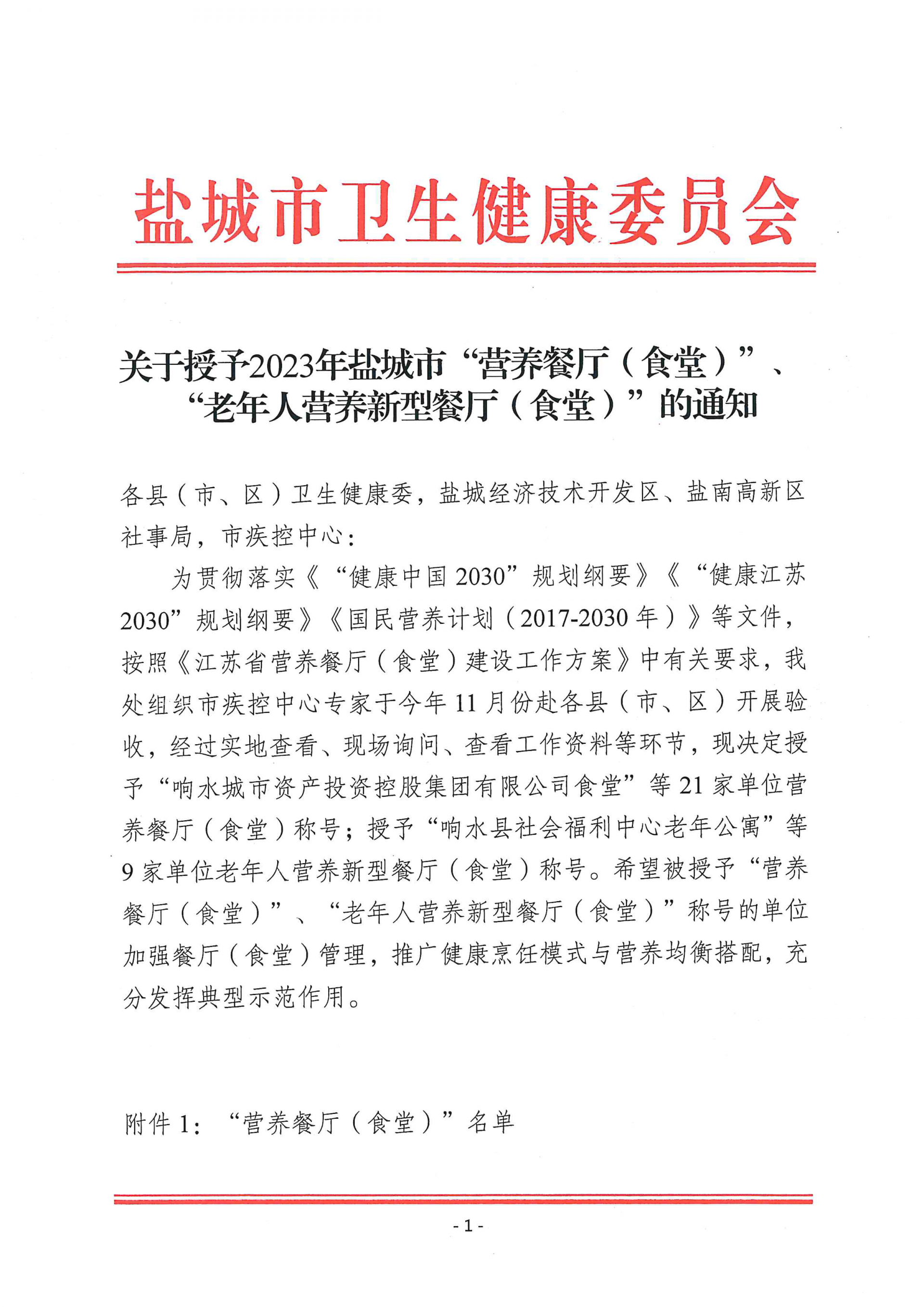 近日,市衛(wèi)生健康委員會印發(fā)《關(guān)于授子2023年鹽城市“營養(yǎng)餐廳(食堂)”“老年人營養(yǎng)新型餐廳(食堂)”的通知》,鹽城市海興集團(tuán)食堂被授予“營養(yǎng)餐廳(食堂)”榮譽稱號。2023-12-19 -