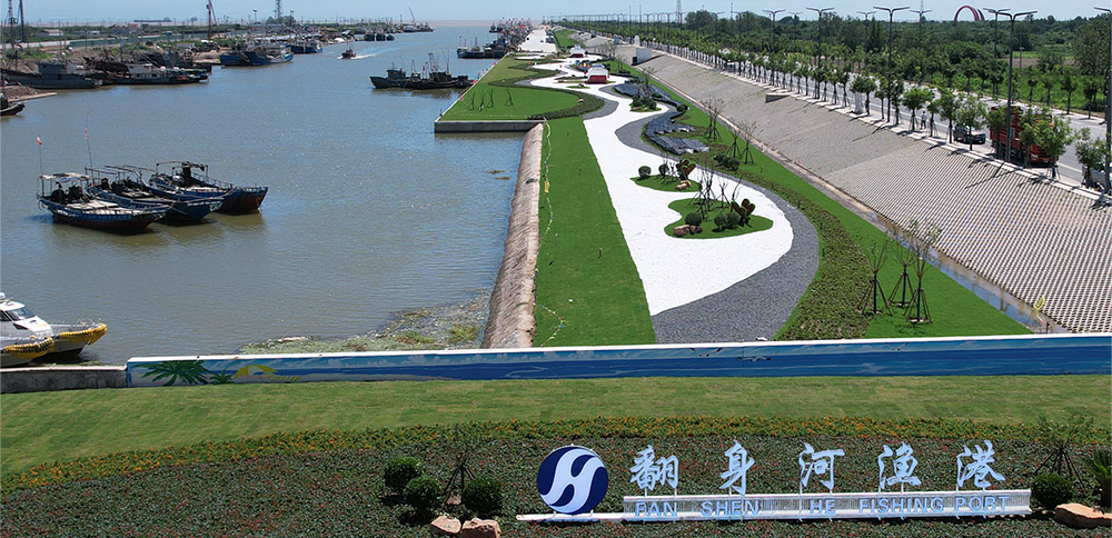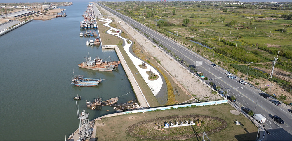 翻身河漁港升級改造項目按照國家一級漁港標(biāo)準(zhǔn)規(guī)劃建設(shè),改造后的陸域面積達88萬平方米,水域面積達30萬平方米,最寬處達220米。水工部分設(shè)有1942米海堤、1345米護岸、2210米碼頭泊位。其中北側(cè)護岸779米,碼頭泊位1242米,南側(cè)護岸566米,碼頭泊位968米,共設(shè)置泊位66個,南北兩側(cè)各33個,合計可并排應(yīng)急??考s1000艘270馬力的漁船。南岸碼頭為休息待泊泊位,北岸為生產(chǎn)性泊位,具有卸魚、加油、加冰、加水等功能,總投資約3.4億元(不含征地拆遷費用)。